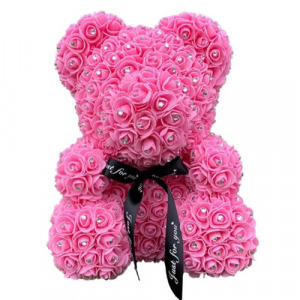 Rózsa maci, virágmaci csillogó strasszkővel 40 cm - Rózsaszín