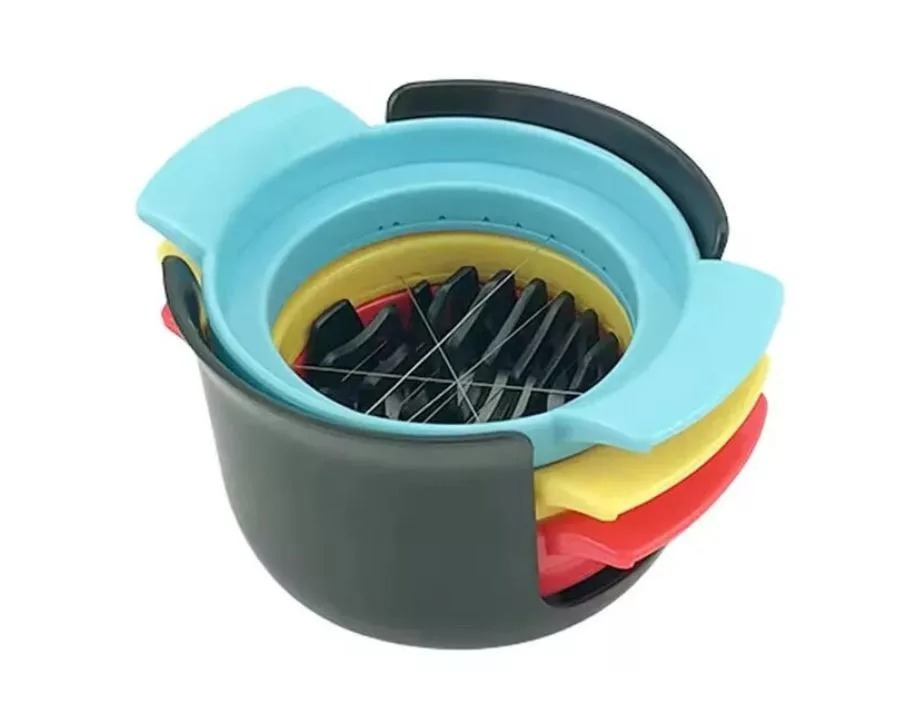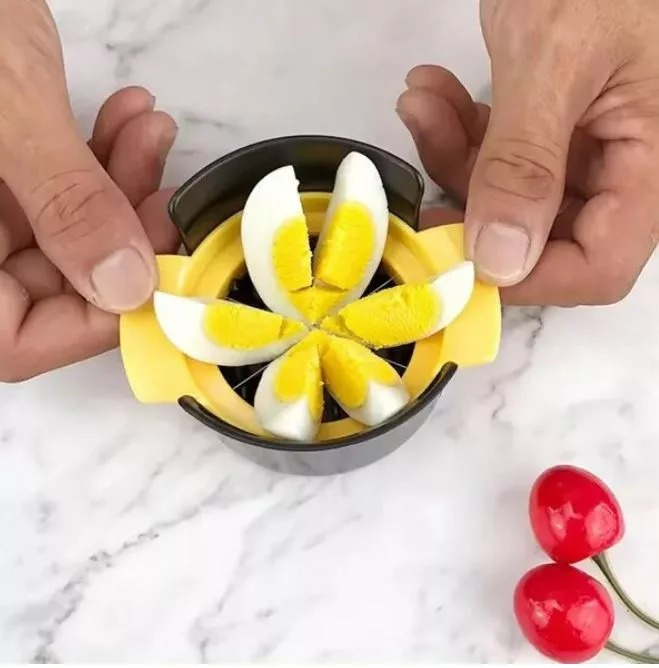 csak helyezze a megfelelő betétet a tartály tetejére, tegye rá a tojást, majd egyetlen mozdulattal préselje át rajta. Máris elkészült a tökéletes, egyenletes vágás - gyorsan, tisztán, erőlködés nélkül.