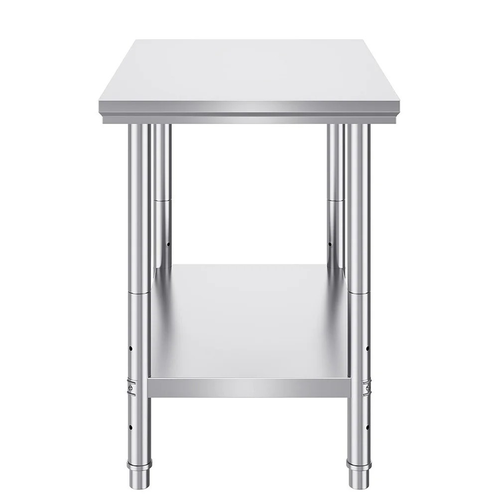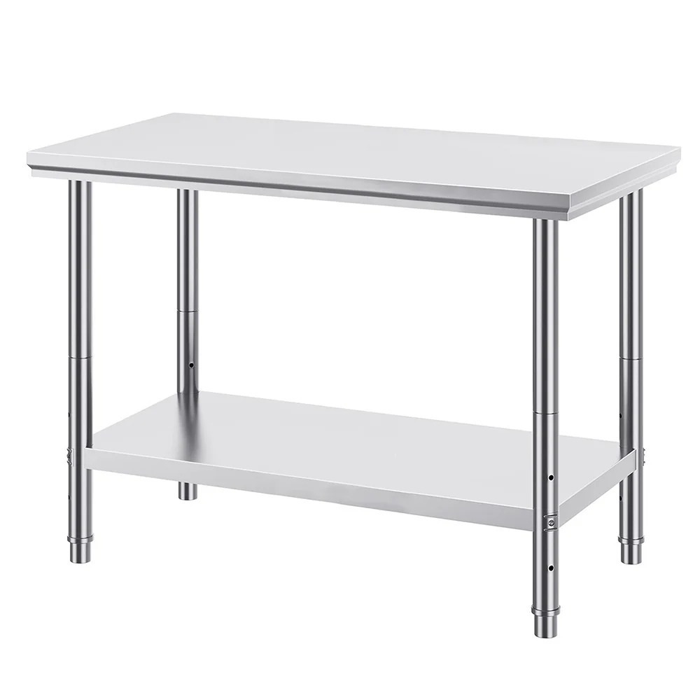 A rozsdásodó, instabil felületek nemcsak a munkát nehezítik, de veszélyeztethetik az élelmiszer-higiéniát is. Ha olyan munkafelületet keresel, amely időtálló, könnyen karbantartható és bírja a konyhai strapát, ez az asztal ideális választás. Az asztal teljes mérete 120 × 60 × 78,5 cm. A 6 cm vastag asztallap strapabíró, a 201-es rozsdamentes acél (SS201) anyag garantálja a hosszú élettartamot. Az alsó polc a padlótól 13 cm-re, míg az asztallaptól 66 cm-re helyezkedik el ? így bőséges helyet kínál nagyobb eszközök vagy ládák tárolásához is.