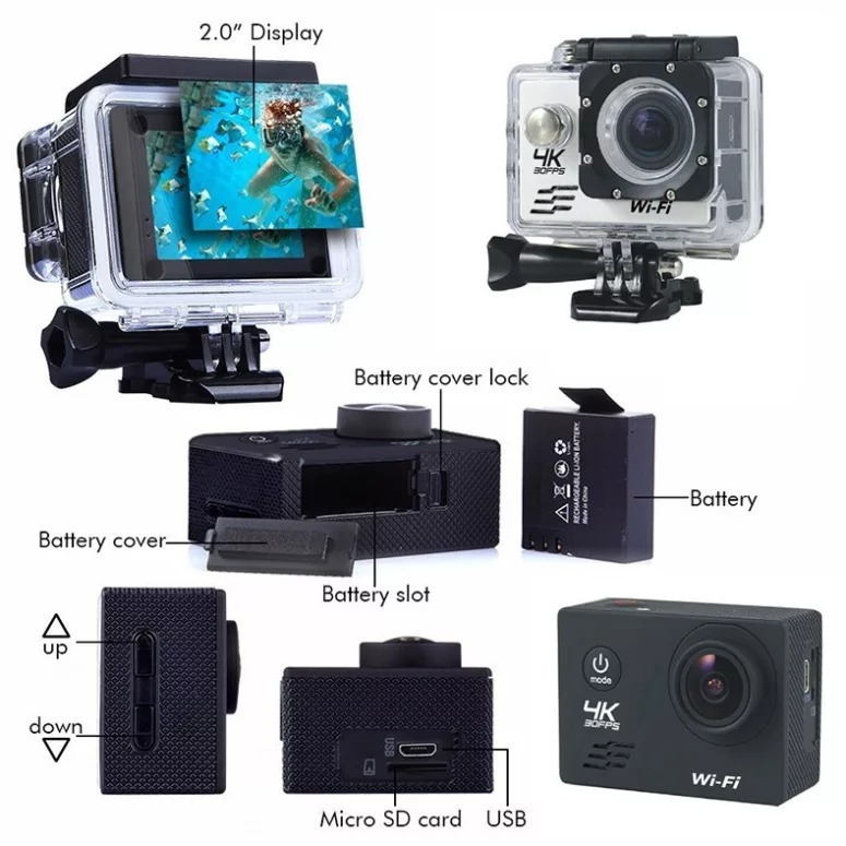 WiFi és kézi vezérlés. Mobiltelefon applikációval WiFi-n keresztül rá lehet csatlakozni a sportkamerára, amellyel videófelvételt és fényképeket készíthet: