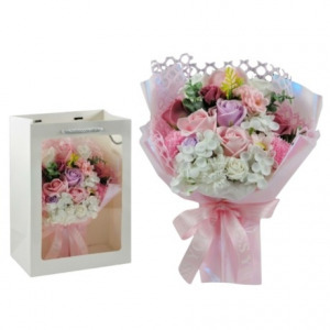 Szappanrózsa virágcsokor dísztasakban rózsaszín