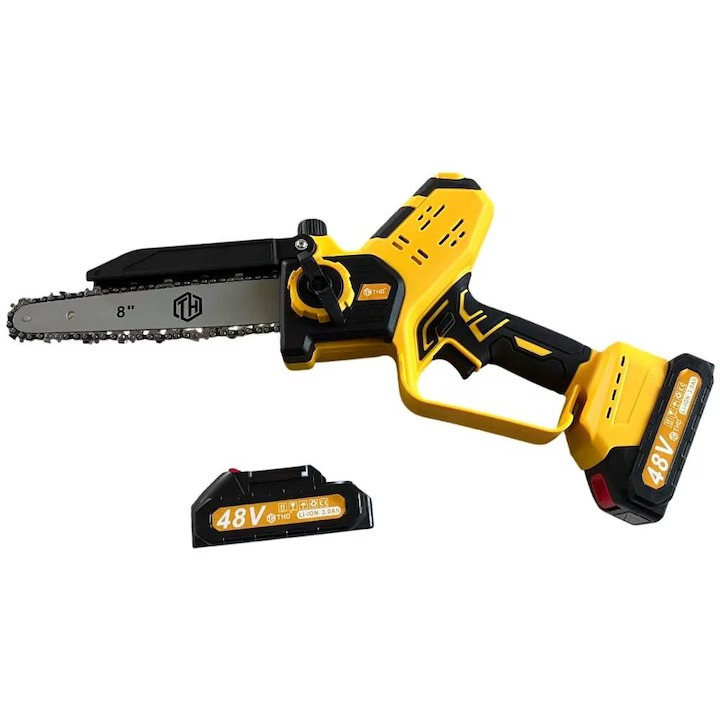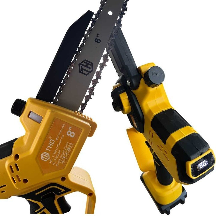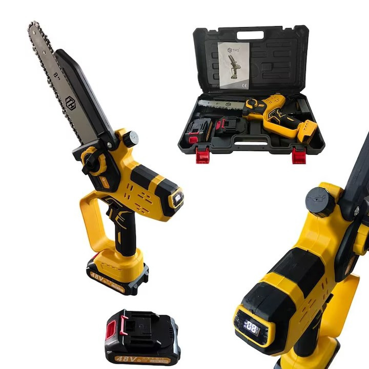 Szeretnéd, ha a fakitermelés és a kerti munkák nem jelentenének kihívást, hanem élvezetesek lennének? A THO M-9019 akkus láncfűrész a tökéletes választás számodra, ha egy megbízható, mégis kompakt gépre van szükséged, amellyel hatékonyan végezheted el a kisebb vágási feladatokat. Ez a láncfűrész a legújabb technológiákat ötvözi a felhasználóbarát kialakítással, így a gallyazás és az ágak darabolása gyerekjátékká válik. A digitális kijelző és a két darab 48V-os akkumulátor révén a THO M-9019 professzionális teljesítményt és kényelmet biztosít a munkád során.