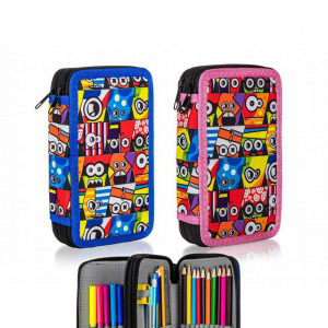 A 13 x 19,5 cm méretű, töltött emeletes tolltartó iskolás korú gyerekek nélkülözhetetlen eszköze, 2 színben választható. Minden emelet külön cipzárral zárható.