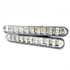 A hosszúkás LED panelekben 20-20 nagy teljesítményű SMD LED foglal helyet, oldalanként 8-8 Watt teljesítménnyel. Bármely autóhoz használható, aminek rendszere 12V feszültségről működik. Könnyen felszerelhető, a rögzítéshez szükséges csavarokat a csomag tartalmazza. Erős, fém konzollal illeszthető a kívánt helyre, és beállítható a megfelelő szögbe. A nagy teljesítményű SMD ledek hidegfehér fénnyel, kb 6000K színhőmérséklettel világítanak. A műanyag búrán E4 és RL0087 jelöléssel van ellátva mindkét fényforrás.