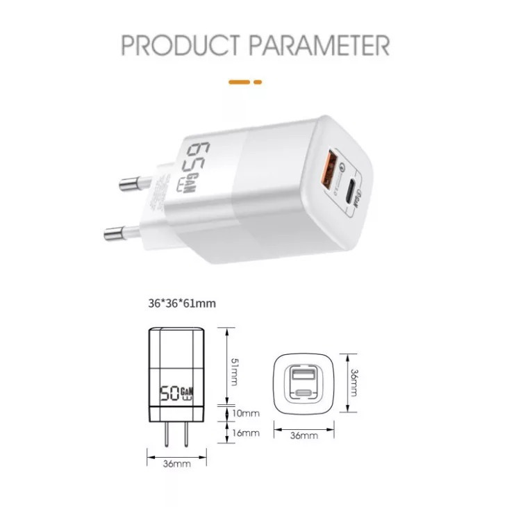 * GaN technológia: Hatékony energiafelhasználás, kicsi méret és kevesebb hőtermelés a hagyományos töltőkhöz képest.