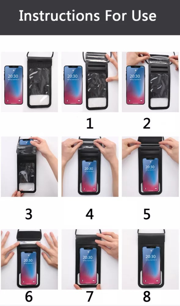 Könnyen hordozhatja telefonját ebben a vízálló telefontartóban. Így víz alatt is készíthet vele képeket, valamint videókat is.