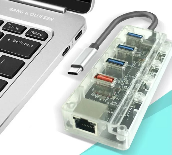A BYL-1719C 5 portos USB Hub/Elosztó lehetővé teszi a USB-C porton keresztüli az adat- és energiaátvitelt öt különböző porton át. Az elosztó tartalmaz három USB 3.0 adatátviteli portot, és egy QC2.0 gyorstöltő portot, valamint egy Ethernet portot.